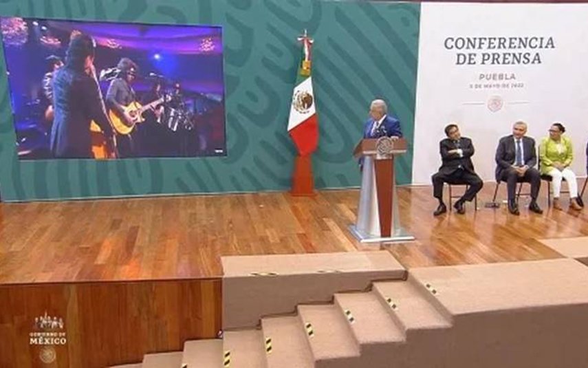 “Esta canción también va dedicada a los migrantes poblanos”, dijo López Obrador antes de reproducir el corrido.
