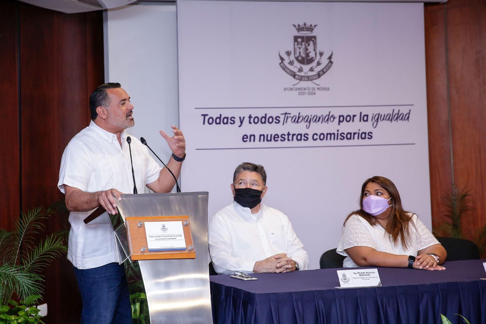 Brindar mejores condiciones de desarrollo y oportunidades de igualdad de género es un deber por el cual trabaja Ayuntamiento de Mérida, por ello, el alcalde Renán Barrera durante clausura de la jornada de talleres “Todas y Todos Trabajando por la Igualdad en Nuestra Comunidad” que estuvo dirigido a comisarias y comisarios del Municipio, dijo que:
