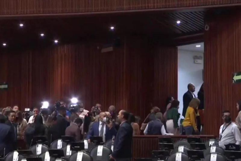 Los legisladores del PAN, PRI y PRD tomaron sus objetos personales, se levantaron de sus curules y abandonaron la sala.