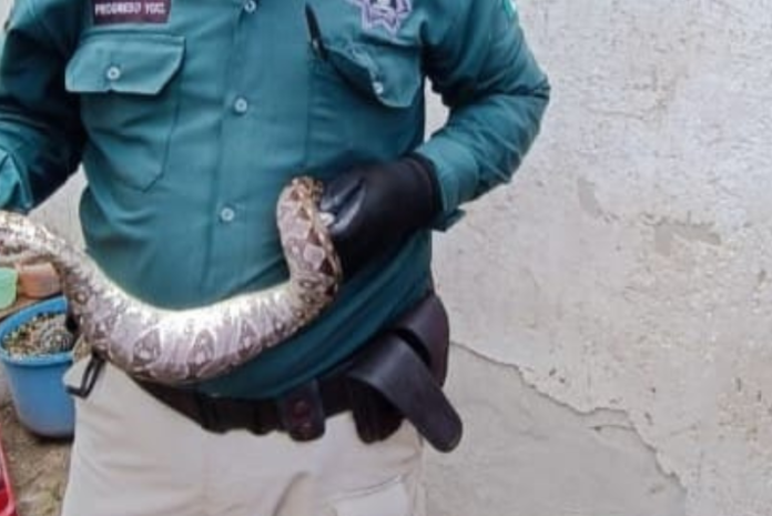 Gran susto se llevó una familia de la calle 55A por 62 del puerto de Progreso al encontrar en su propiedad una Boa Constrictor, de inmediato dieron parte a las autoridades.