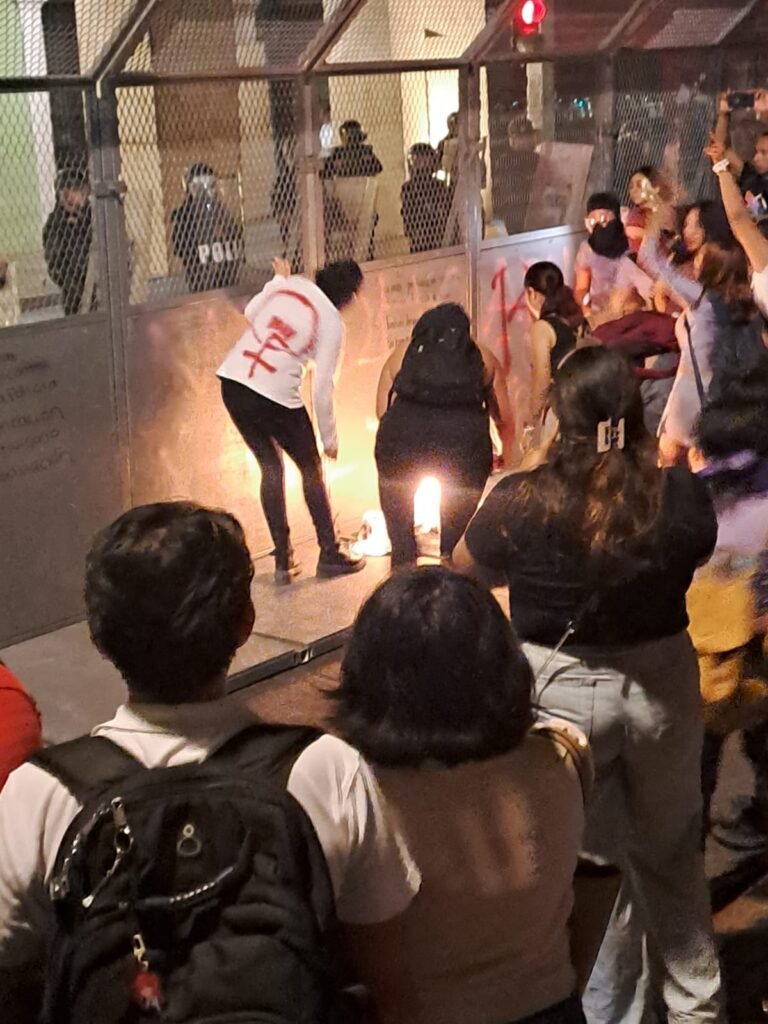 Y es que, como indicamos antes, a los actos vandálicos se sumaron varones, quienes con tubos metálicos rompieron una de las vallas en Plaza Grande y realizaron pintas y quemas en el Palacio Municipal de Mérida, acciones que continuaron hasta casi la medianoche.