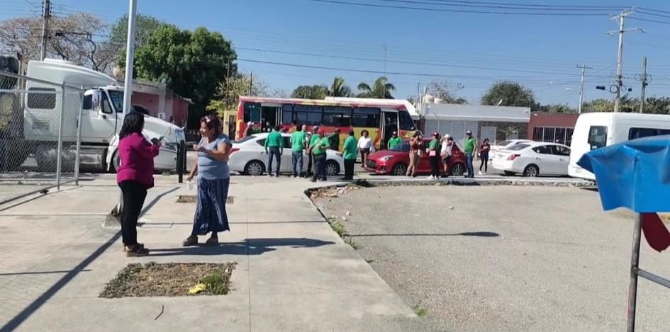Algunos choferes de autobuses estacionaron sus vehículos en las calles laterales del centro de desarrollo integral de San José Tecoh, a unas cuantas esquinas del lugar principal del evento. Se observó que personas de la tercera edad o con discapacidades fueron movilizadas en transporte convencional, aunque se les brindó la cortesía de descender a una corta distancia del sitio.