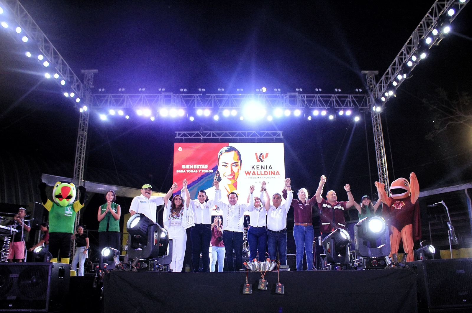 También se contó con la presencia de Verónica Camino Farjat y Jorge Carlos Ramírez Marín, candidatos al Senado de la República; Alejandro Cuevas Mena,candidato a diputado local; y Jazmin Villanueva Moo, candidata a Diputada Federal. Todos ellos respaldaron el mensaje de unidad y cambio propuesto por Kenia Walldina Sauri Maradiaga.