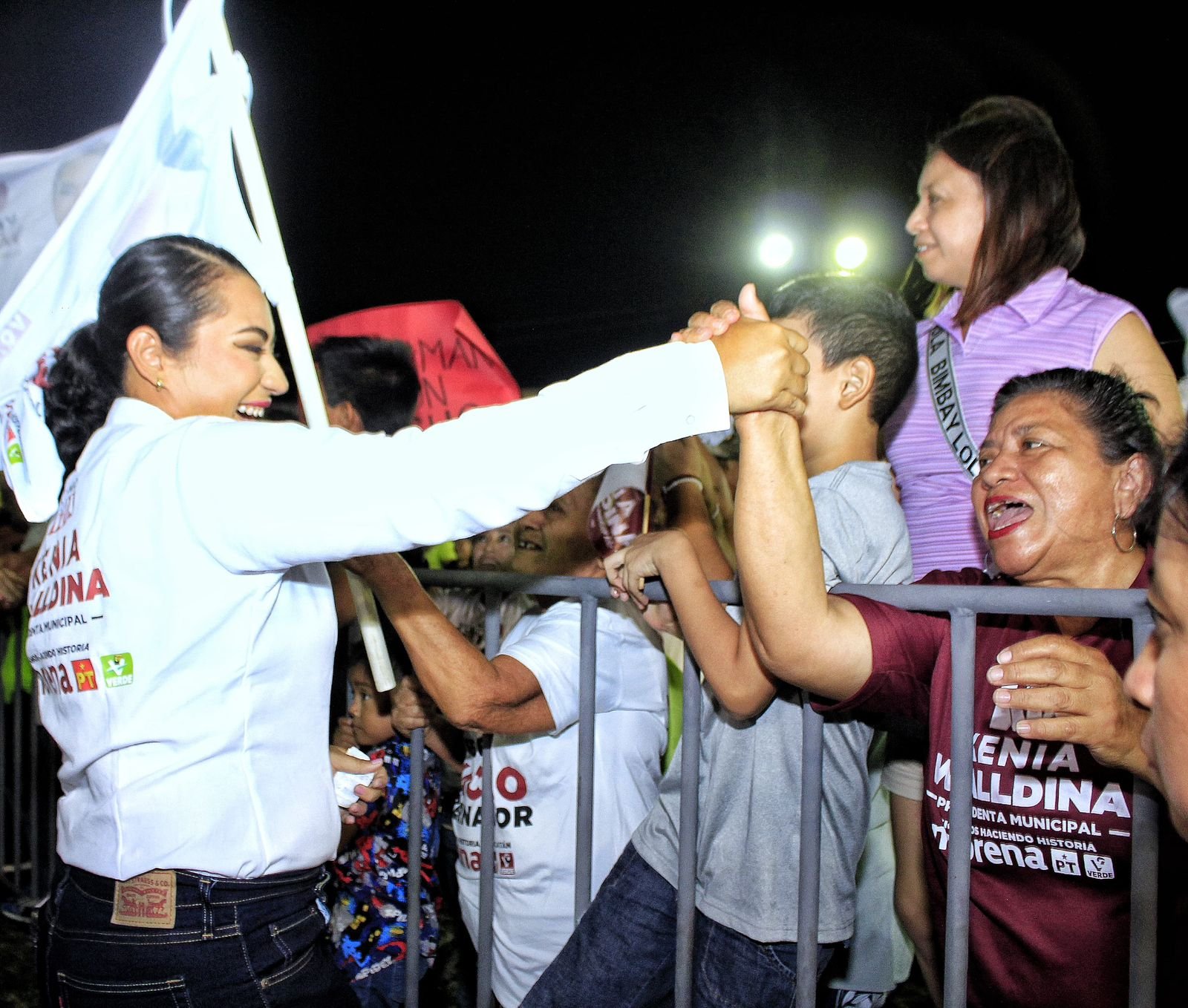 Kenia Walldina Sauri Maradiaga destacó sus propuestas en áreas clave como salud, educación y seguridad, y subrayó la necesidad de servicios públicos de alta calidad. El apoyo popular fue palpable, con la multitud aclamando “¡Kenia presidenta! ¡Kenia presidenta!”
