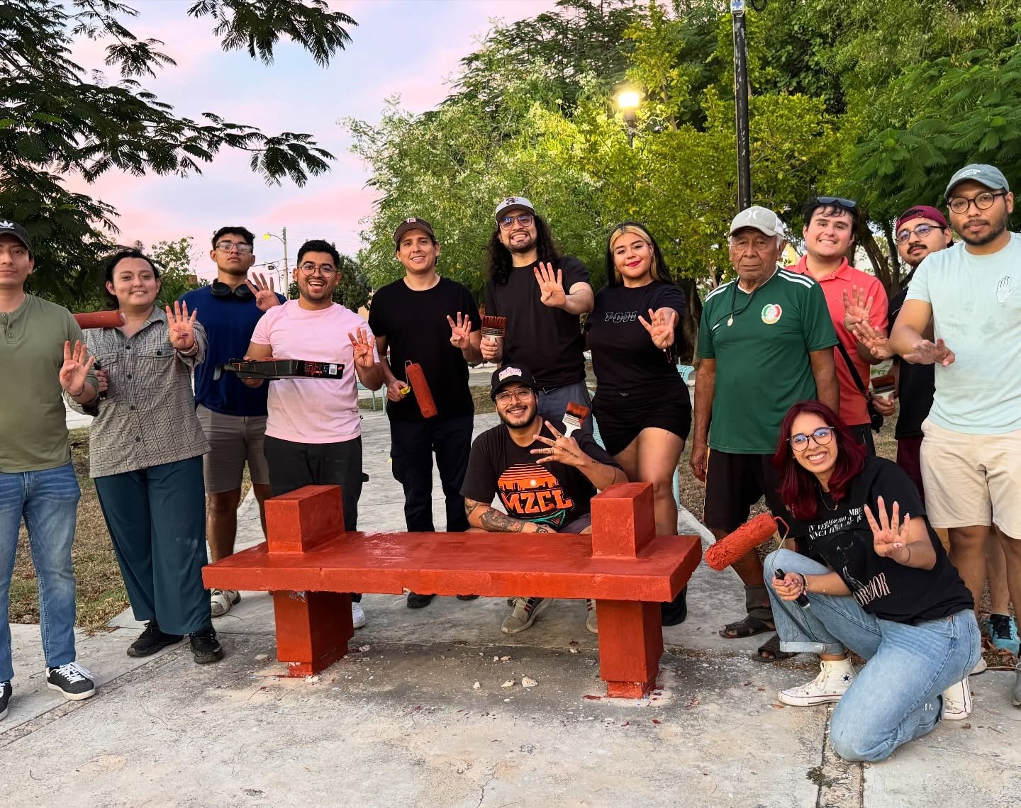 En lo que algunos ya califican como una “gesta histórica” digna de figurar junto a los grandes proyectos nacionales, jóvenes vinculados a Morena celebraron públicamente haber pintado de color guinda… una banca de parque. Sí, una sola. 🎨