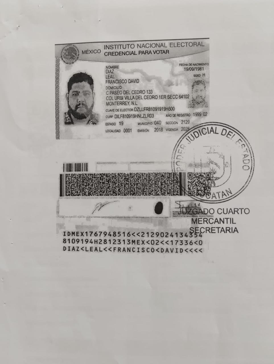 La compra es realizada por Francisco David Diaz Leal, originario de Monterrey, Nuevo León quien ya es plenamente identificado como consta en la denuncia 443/2021 interpuesta en el Juzgado Tercero de lo Civil.