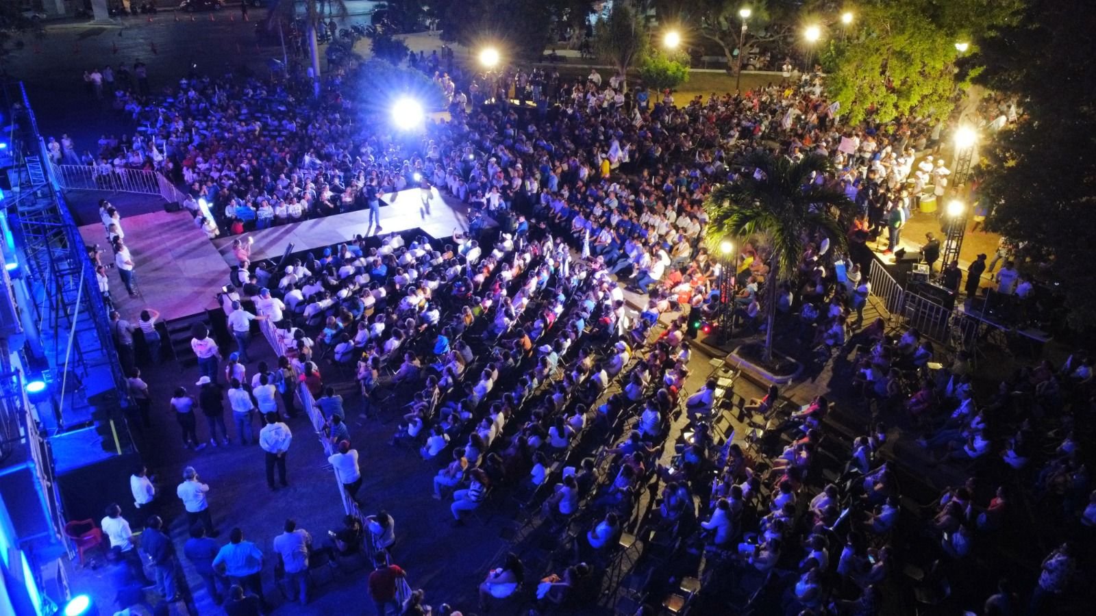 El evento tuvo lugar en el parque Hidalgo de esta ciudad que lució completamente abarrotado de simpatizantes quienes en todo momento corearon los nombres de los candidatos haciéndoles sentir su total respaldo al proyecto que encabezan y que busca continuar trabajando por la ruta de cambio y transformación trazada por los buenos gobiernos de Acción Nacional como el de Mauricio Vila Dosal.