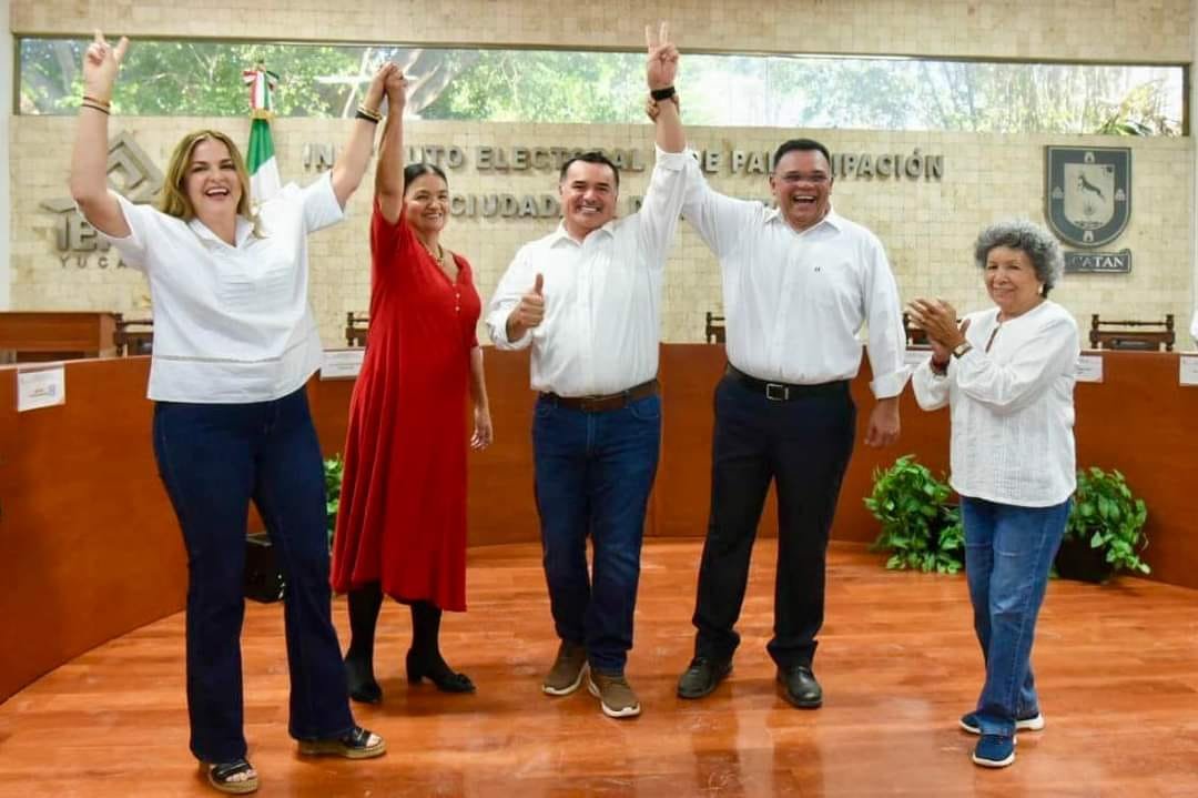 Cecilia Patrón Laviada también fue registrada oficialmente como candidata a la alcaldía de Mérida por esos tres partidos. La diputada federal expresó su alegría y entusiasmo en un día muy especial, en el que se siente muy entusiasmada, pero sobre todo segura de este gran proyecto que representa en equipo con Renán, con los meridanos y los yucatecos.