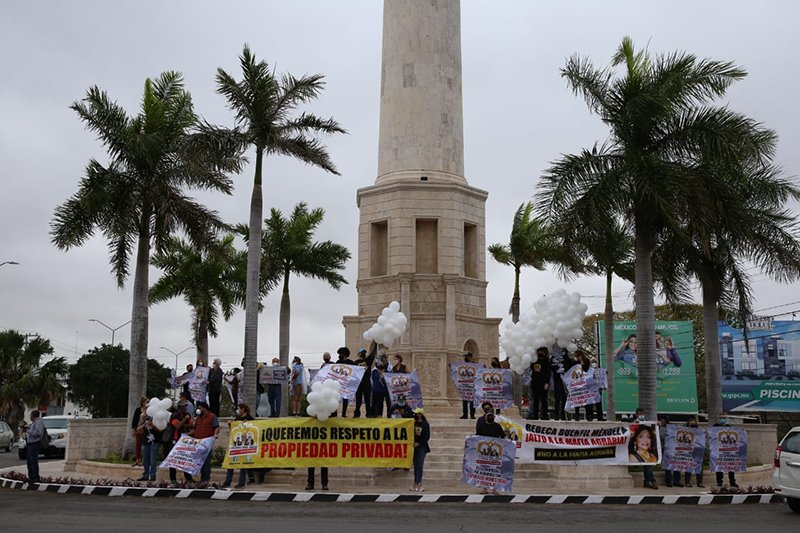 En el Monumento a las Haciendas, un grupo de ciudadanos de los fraccionamientos Los Arcos y Vista Alegre, realizaron una caravana de autos donde protestaron contra la ‘Mafia Agraria’ en Mérida.