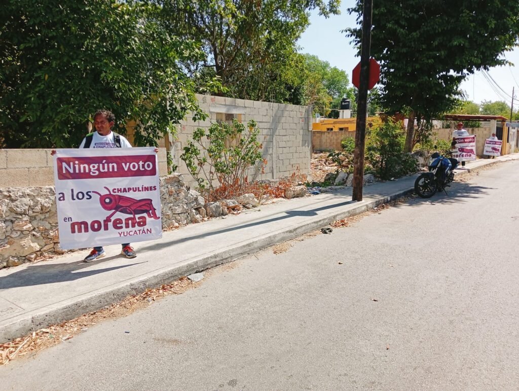 En el Domingo de Resurrección, el “Movimiento Antichapulines” de los fundadores del partido Morena en Yucatán se dejó sentir en la capital yucateca. Mientras el arranque de la campaña del saltimbanqui Rommel Pacheco Marrufo, candidato guinda a la alcaldía meridana, lució desangelada, al grado que acarreados de Celestún no lograron llenar las sillas dispuestas al público esperado, la base de la 4T salió a pedir a la ciudadanía que no voten por los candidatos impuestos desde Palacio Nacional por YSQ.