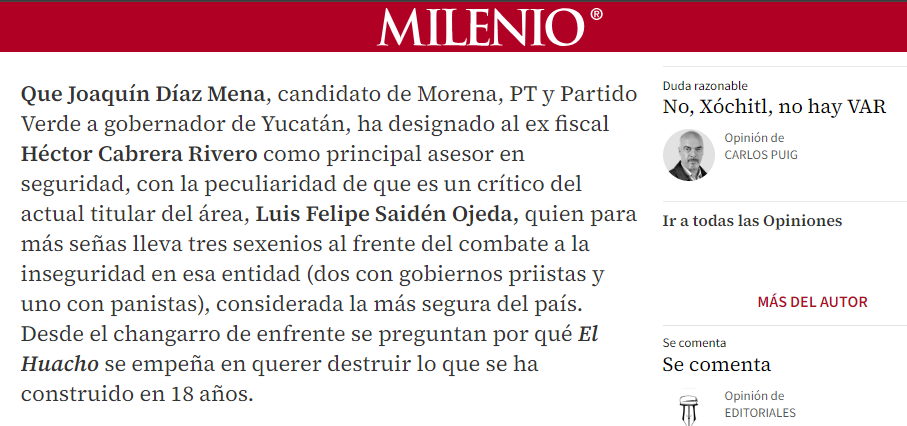 “¿Por qué El Huacho se empeña en querer destruir lo que se ha construido en 18 años?“, se preguntan analistas y periodistas desde el ámbito político y social. Esta designación plantea incertidumbre sobre el rumbo que podría tomar la estrategia de seguridad en Yucatán en caso de que Díaz Mena resulte electo como gobernador.