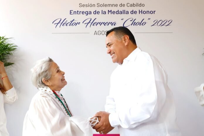 “Con la entrega de esta medalla reconocemos y agradecemos la aportación de Vicky Villa al teatro regional del que formó parte durante más de tres décadas, en largas temporadas y giras junto a la gran familia que formó ‘Cholo’ sobre el escenario”, expresó el Primer Edil.