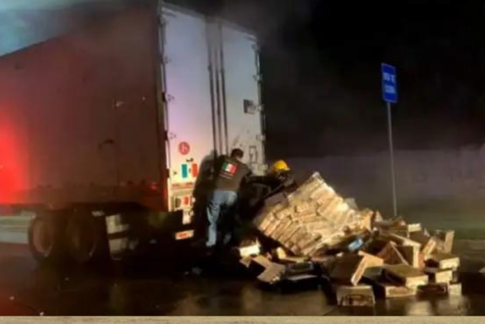 En la avenida Isla de Tris, a la altura del Templo de los Mormones de Ciudad del Carmen la caja de un tráiler que transportaba cajas de sopa instantánea se incendió.