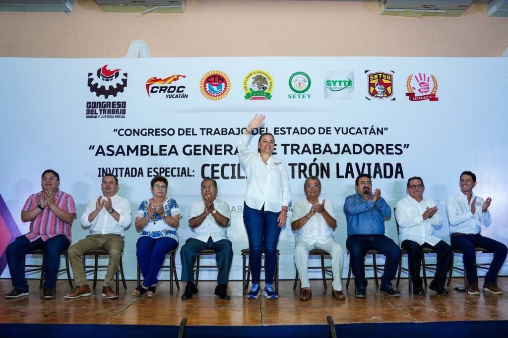 Más de dos mil integrantes del Congreso del Trabajo dieron su respaldo de manera unánime a la candidata por la alcaldía de Mérida, Cecilia Patrón Laviada. En el marco de la “Asamblea General de Trabajadores”, Pedro Oxté Conrado, presidente del Congreso del Trabajo y secretario General de la Federación Revolucionaria de Obreros y Campesinos de Yucatán, afirmó que Cecilia es una mujer con experiencia política probada y con capacidad para resolver las necesidades de las familias que viven en Mérida.